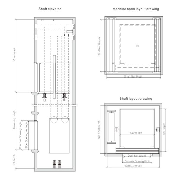 Machine Roomless Freight Elevator Construction Layout Drawing